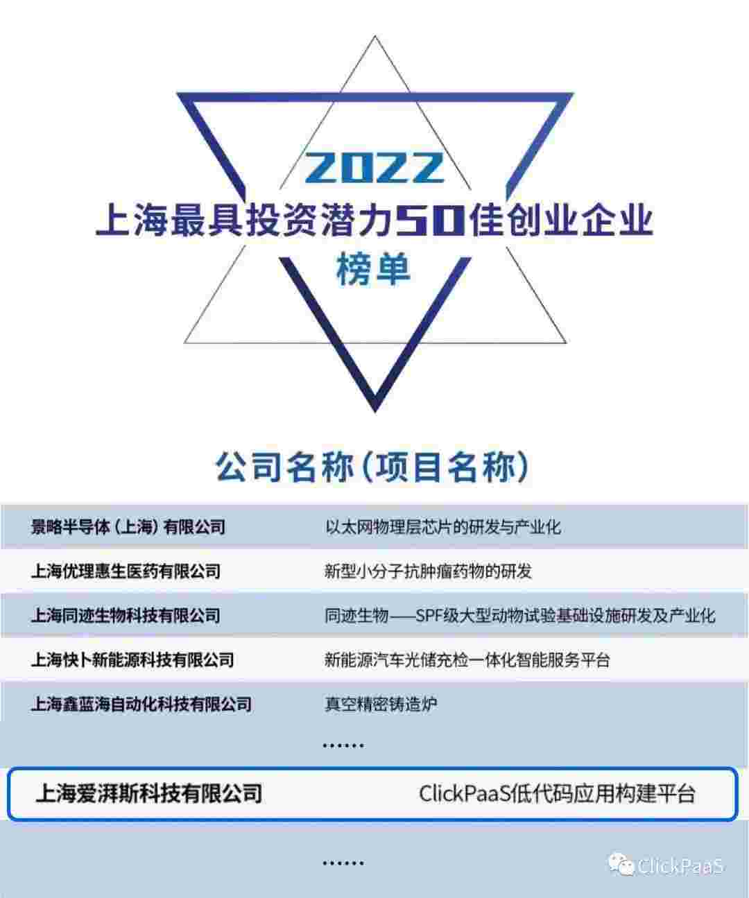 CGPAY钱包 作为国内低代码PaaS平台的领军企业,,,,与120家创企入围角逐。。。。期间接受了来自德同资本、、、、领中资本等知名投资机构的10位投资人组成专家评委团的背靠背盲选。。。。并最终入围“2022上海最具投资潜力50佳创业企业”榜单,,,被列入“上海市重点培育创业企业库”。。。